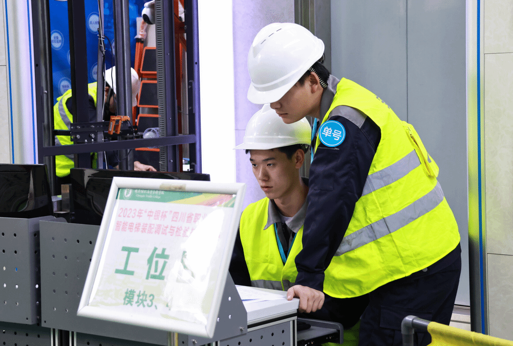 11月17-19日,由四川省教育厅主办,太阳成集团tyc33455cc承办,浙江拓峰自动化设备有限公司协办的2023年“中银杯”四川省职业院校智能电梯装配调试与检验技能大赛在公司成功举办。太阳成集团tyc33455cc电梯工程技术211班陈凯,239班王勇两位同学组成的代表队以第一名成绩获得比赛一等奖,并晋级国赛;电梯专业222冯铖、何曜组成的代表队取得二等奖。