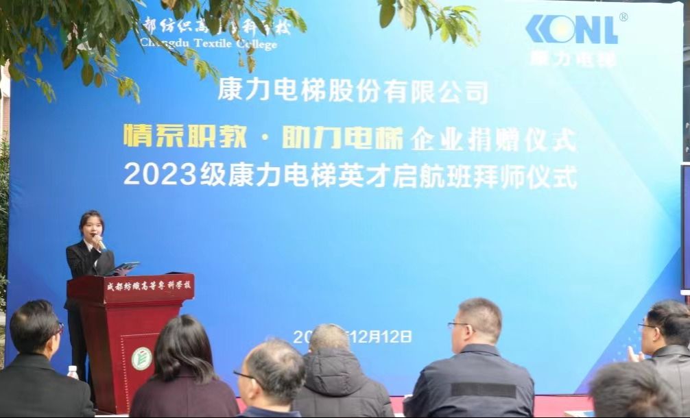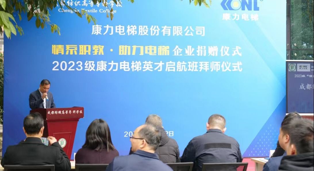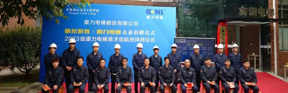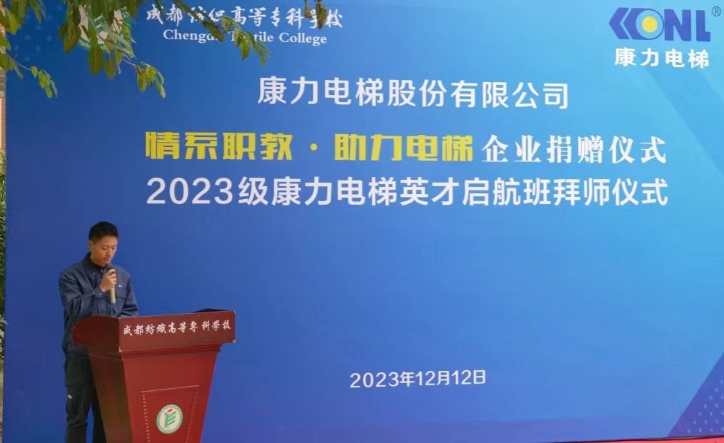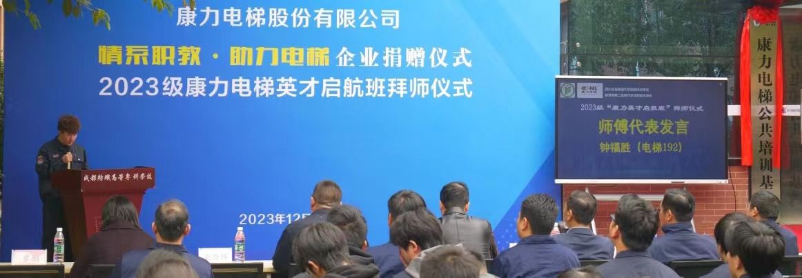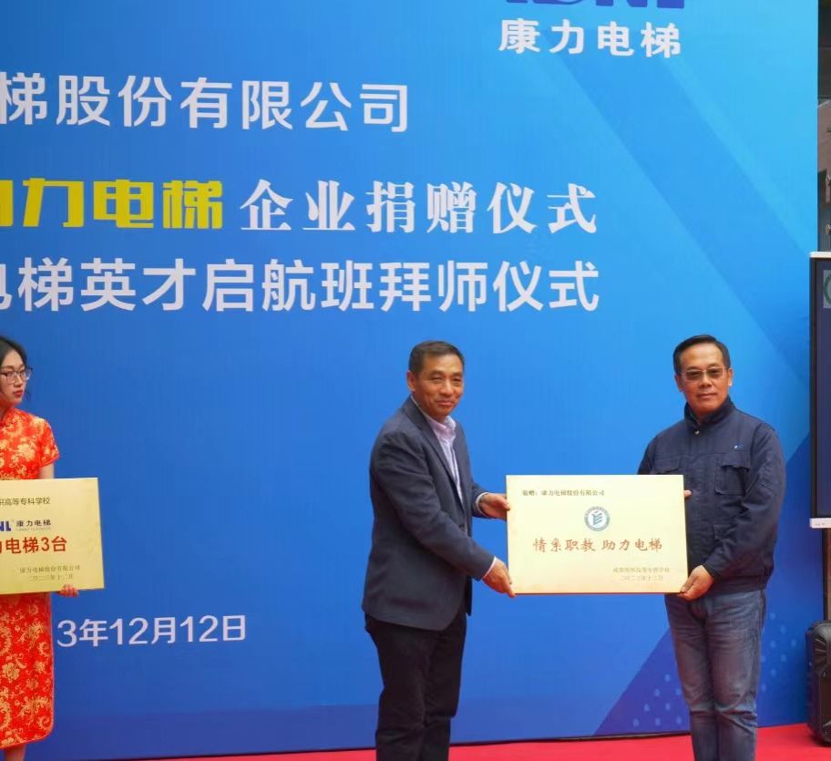 2023年12月12日下午,太阳成集团tyc33455cc与康力电梯股份有限公司举行了的康力电梯捐赠仪式和2023级康力电梯英才启航拜师仪式,康力电梯股份有限公司给学校捐赠电梯3台。
