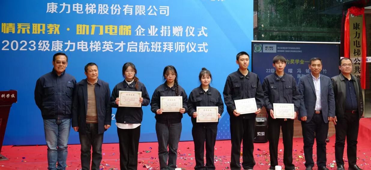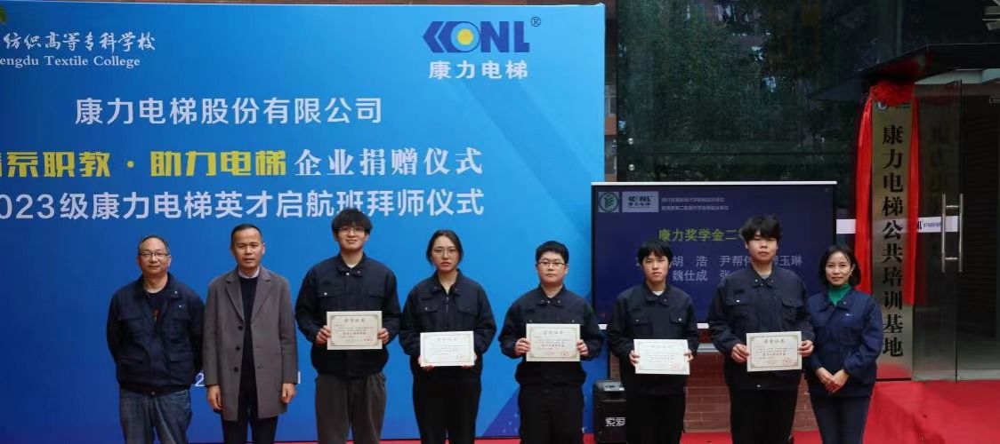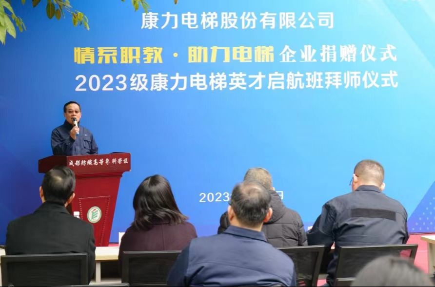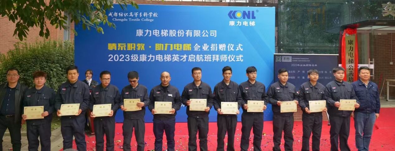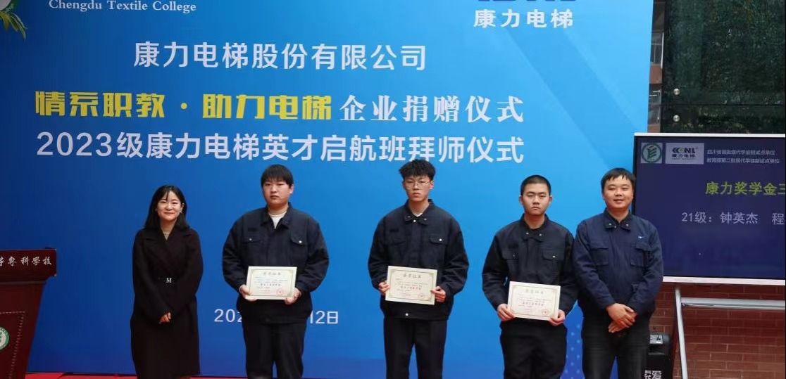 2023年12月12日下午,太阳成集团tyc33455cc与康力电梯股份有限公司举行了的康力电梯捐赠仪式和2023级康力电梯英才启航拜师仪式,康力电梯股份有限公司给学校捐赠电梯3台。