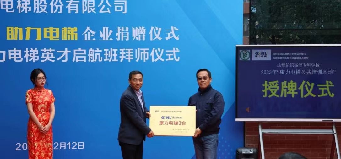 康力电梯经过数年发展,成功晋升全球电梯制造商十强,是国内第一家上市的电梯企业,有着非同凡响的影响能力。公司与康力电梯股份有限公司合作多年,培养出了许多电梯专业的人才。康力电梯此次捐赠3台电梯丰富了公司教学电梯的类型,员工专业知识及技能将得到有效提高;在培训基地中,校企师生共同参与电梯技术研发,力争实现学校、企业、员工的三方共赢。