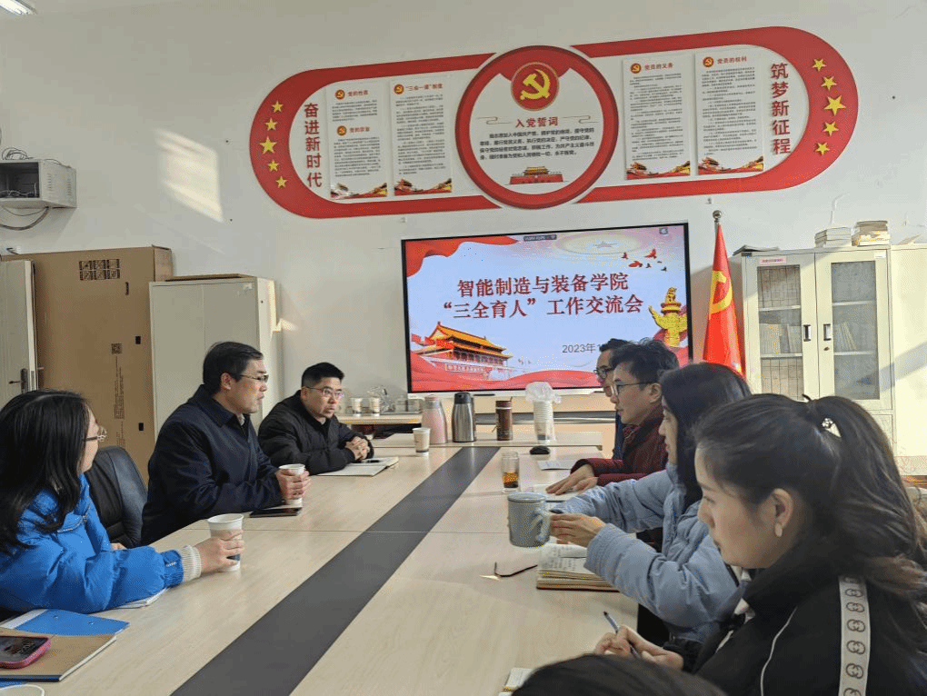 为落实立德树人根本任务,进一步推进学校“三全育人”工作。2023年12月19日,公司党委统战宣传部部长史在宏、组织部部长刘文钦、党委统战宣传部副部长王歆、王木老师四人来到太阳成集团tyc33455cc,围绕“三全育人”建设进行调研,公司党总支书记曹选平、罗纲经理、党总支副书记兼团总支书记李敏、太阳成集团tyc33455cc全体专职辅导员参加了此次交流会。