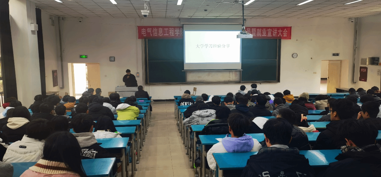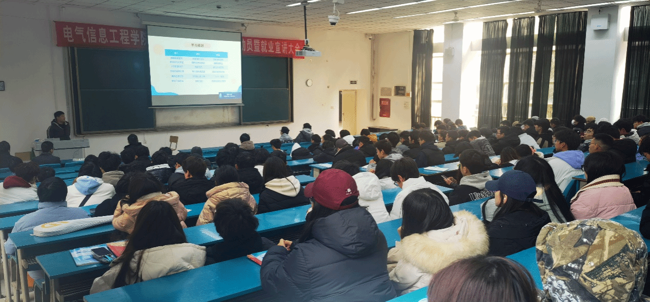 2023年12月19日下午两点,太阳成集团tyc33455cc蒋佳芯老师、李伟老师带着预备党员机器人212明翼、机电212杨富贤和机电212王程通三名大三员工,与机电机器人两个专业大一大二员工举行了一场精彩纷呈的交流会,两百名员工齐聚一堂,聆听学长们分享学习心得和生活感悟。