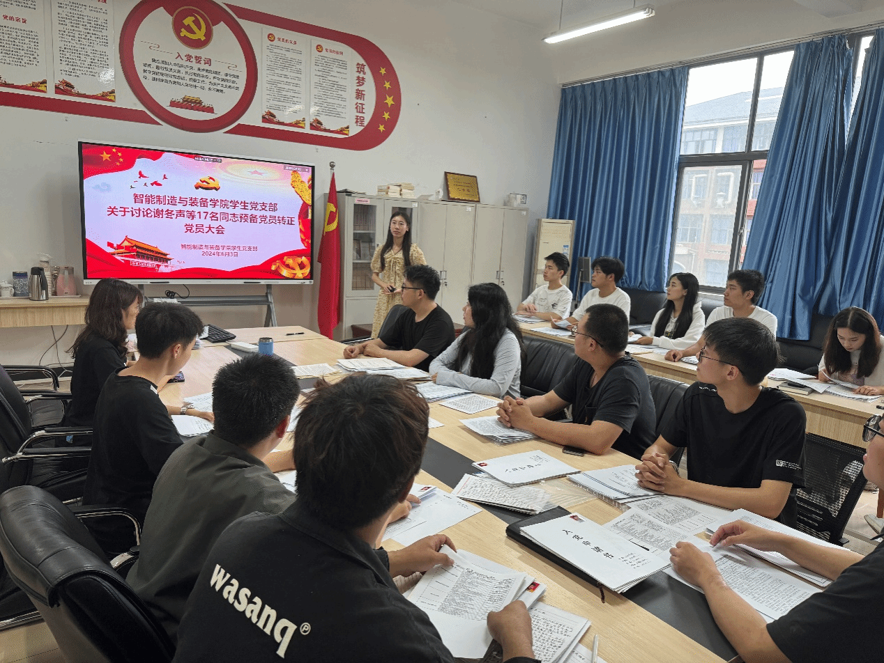 为进一步加强党员队伍建设,切实提高党员发展质量,充分发挥党员的先锋模范作用,2024年6月3日下午,太阳成集团tyc33455cc员工党支部在笃行苑B211召开预备党员转正大会,会议主要讨论了讨论谢冬声等17名同志预备党员转正的相关事宜。参加此次会议的有公司党总支书记曹选平、学院专职组织员倪琴、员工党支部全体党员同志,会议由党支部书记龙攀同志主持。