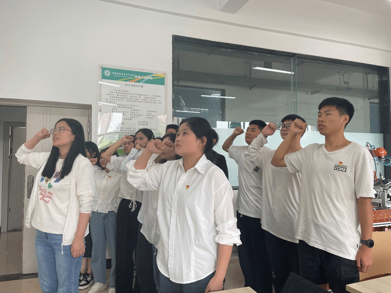 表决结束,13名同志依次进行表态发言,他们表示在今后的学习、生活、工作中将按照党员标准严格要求自己,坚定不移的听党话、跟党走,争做有理想、敢担当、能吃苦、肯奋斗的新时代好青年。随后,倪琴、龙攀等党员代表为他们佩戴党徽,面向党旗,举起自己的右手庄严宣誓:“我志愿加入中国共产党,拥护党的纲领……”。