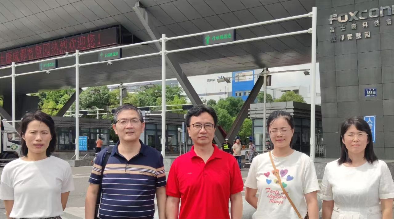 7月3日智能制造与装备公司机电专业教师和辅导员老师在曹选平书记的带队下,深入鸿富锦精密电子(成都)有限公司开展毕业生就业回访和职教本科调研。