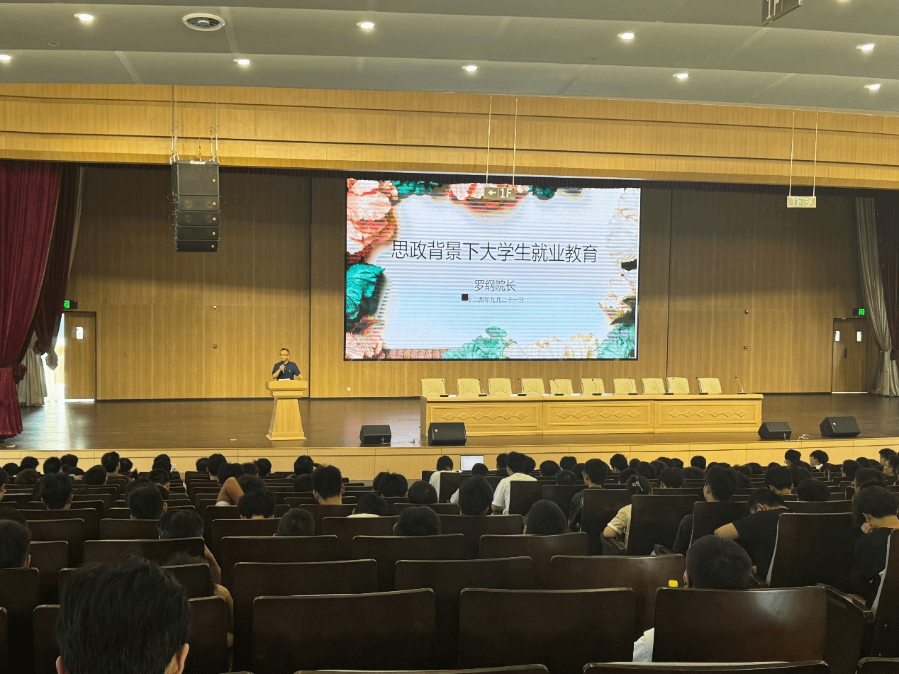 随后,罗纲经理以“思政背景下老员工就业教育”为主题,深入浅出地分析了当前老员工就业面临的形势和挑战,并结合思政教育的重要性,为新生们提供了宝贵的就业指导和建议。