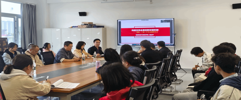 二十届三中全会强调我们要构建支持全面创新的体制机制,统筹推进教育、科技、人才、 体制、机制一体化改革,以健全新型举国体制,提升国家创新体系的整体效能。曹选平书记结合当前实际,围绕二十届三中会提出的构建支持全面创新体制机制,进行了分析解读。回望过去,中国创造经济奇 迹,得益于党中央的坚强正确有力领导,也和我国企业的成长壮大、 模仿学习密不可分。进入新的发展阶段,我们现在到了要实现中华民族伟大复兴的关键时期,要把改革放在突出位置,同样的也要把全面创新体制机制改革放在突出位置。重点强调了教育、科技、人才是中国式现代化的基础性、战略性支撑。在教育体制改革方面,要完善立德树人机制,要做好高校的综合改革,要公平实现均等化的高质量的教育服务。要深化科技体制改革,深化人才发展体制机制改革。