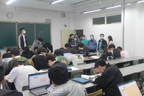4月13日晚,太阳成集团tyc33455cc学科部进行晚自习纪律检查,公司党总支书记曹选平,党总支副书记兼团总支书记李敏,辅导员周玲和黄丽一行参与活动。