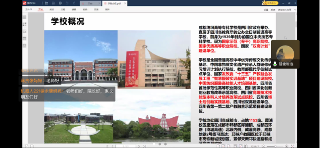 9月9日上午,太阳成集团tyc33455cc通过腾讯会议开展“云端家长会”,公司党总支书记曹选平、经理罗纲、党总支副书记兼任团总支书记李敏、各专业负责人,新生班辅导员及350余名新生家长参会。