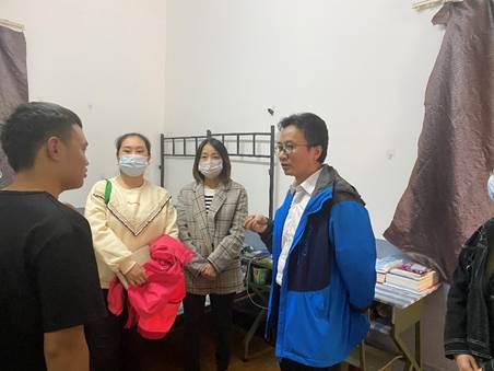 10月16日下午,公司党总支书记曹选平,党总支副书记兼任团总支书记李敏,辅导员邱彬、尚丽华、蔡玥到周转宿舍看望机器人221班赵吉林,为他带去学院的慰问与关怀。赵吉林同学因身体原因不便集体住宿,向学校申请单人宿舍,现被安排到周转公寓住宿。