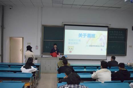 张利宇首先从三个方面给大家介绍了易班的作用:易班是进行思想教育的先进平台,其范围广、影响大、效果好;易班是解决日常事务的有效工具。其功能多、速度快、使用方便;易班是开展各种活动的方便途径,可以实现多媒体、多互动、多途径。随后,他介绍了易班的日常工作,现场教各班负责人如何使用易班,希望大家通过易班做好班级宣传工作,提升宣传水平,进而帮助同学们形成正确的人生观、思想观。