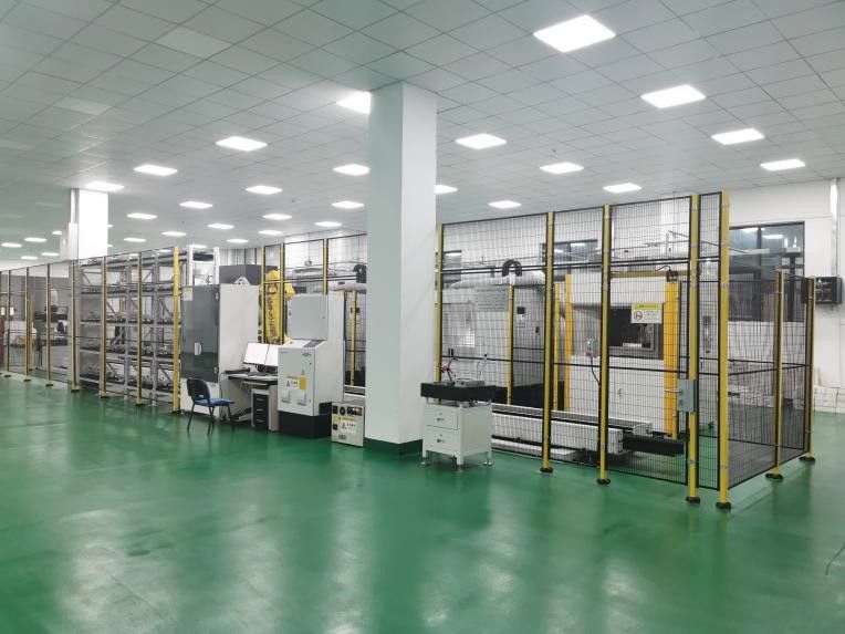 罗纲经理在技术人员的陪同下实地调研了该公司的GF智能生产线建设情况。作为国内精密微特电机研制与工程应用的领军企业,该公司的柔性自动化生产线通过机器人轨道集成了五轴加工中心、三轴加工中心、三坐标测量机、清洗机以及原有的立式加工中心,能够实现产品自动上料、加工、检测、清洗、物料及数据分析,实现产线24小时不间断运行,最终实现产品柔性生产。