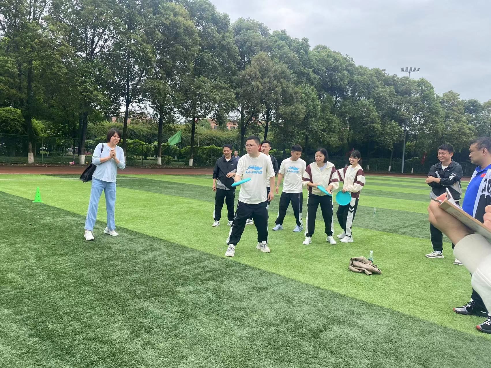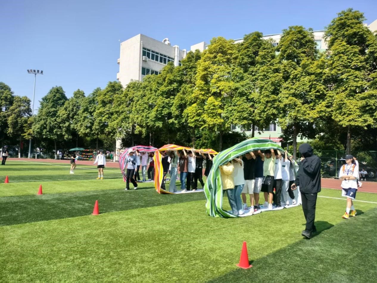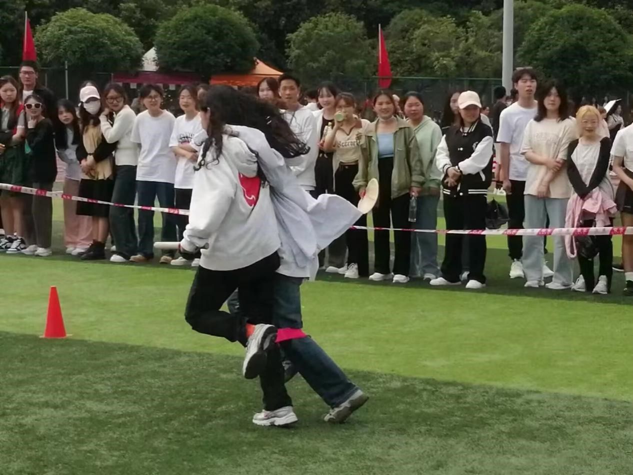 教职工趣味运动学院的老师们都努力的拼搏,在背篓绣球、同心鼓、竹竿运球等项目上每个老师都表现出了与平时上课不一样的激情与活力。最终,在同心鼓和竹竿运球两个项目获得第一、飞盘9宫格第二的好成绩。