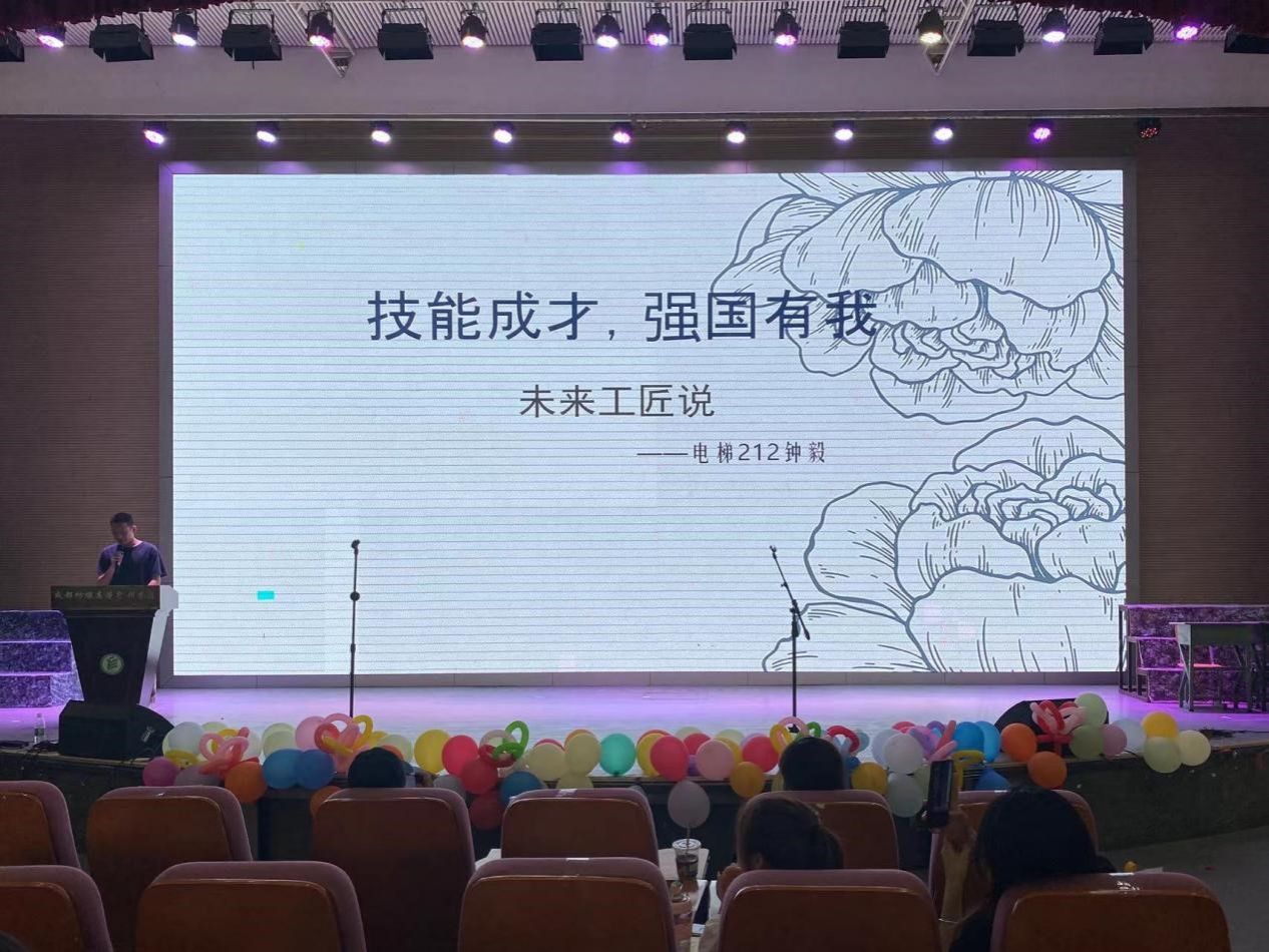 电梯212钟毅给全院同学分享了他“技能成才,强国有我”主题演讲。钟毅同学感言:“身为专科学校的一名学子,身为太阳成集团tyc33455cc的一名学徒,我经常会问自己,我的就业之路该如何去走?一本红色的《中国高技能人才楷模事迹读本》,让我找到了漫漫人生长河的‘源头活水’,厚重的文字,记载着英雄楷模们的红色事迹和一枚枚红色的奖章。读过他们人生篇章的人们都知道,他们中的每一位英雄都只有中专学历。可是,他们就是在一名技校毕业生的基础之上,建立起了人生的辉煌。”