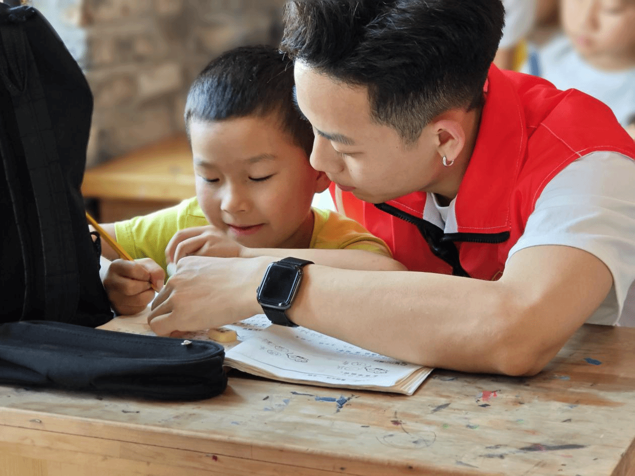 下午,志愿者对小朋友们做到一对一辅导,志愿者们设定了幽默风趣的解题思路,促使小朋友们打开思维,提升学习兴趣。