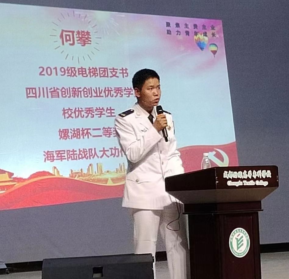 优秀毕业生代表赵欣欣、李书俊、何攀分别给新同学们分享了自己的成长经验,三位同学都提到了员工干部经历,鼓励同学积极抓住机会,不断提高工作能力,修养品德,培养奉献精神与服务精神,提早做好职业规划。