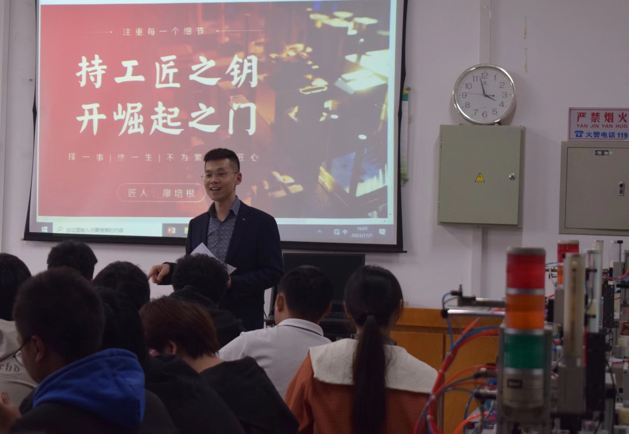 廖培根经理来公司演讲,就是想更好的传承这种匠人精神。他坚持在一家公司工作20多年,“择一事,终一生,不为繁华易匠心”,表达了工匠们不为繁华易匠心,追求完美、不断进取的工作态度。同学们深受启发,对将来自己的职业规划也有了清晰的认识和方向。