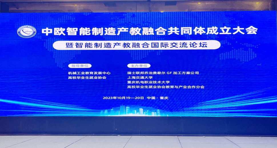 10月19日,中欧智能制造产教融合共同体成立大会暨智能制造产教融合国际交流论坛在重庆举行。教育部国际合作与交流司副司长方军、高校毕业生就业协会副会长杨晓春、高校毕业生就业协会副会长许世杰、瑞士联邦乔治费歇尔GF加工方案公司中国区教育总监史文等行业企业、高校代表共计200余人出席大会。会议审议通过了《中欧智能制造产教融合共同体(职教集团)章程》,发表了《中欧智能制造产教融合共同体工作报告》,公司当选为中欧智能制造产教融合共同体副理事长单位。
